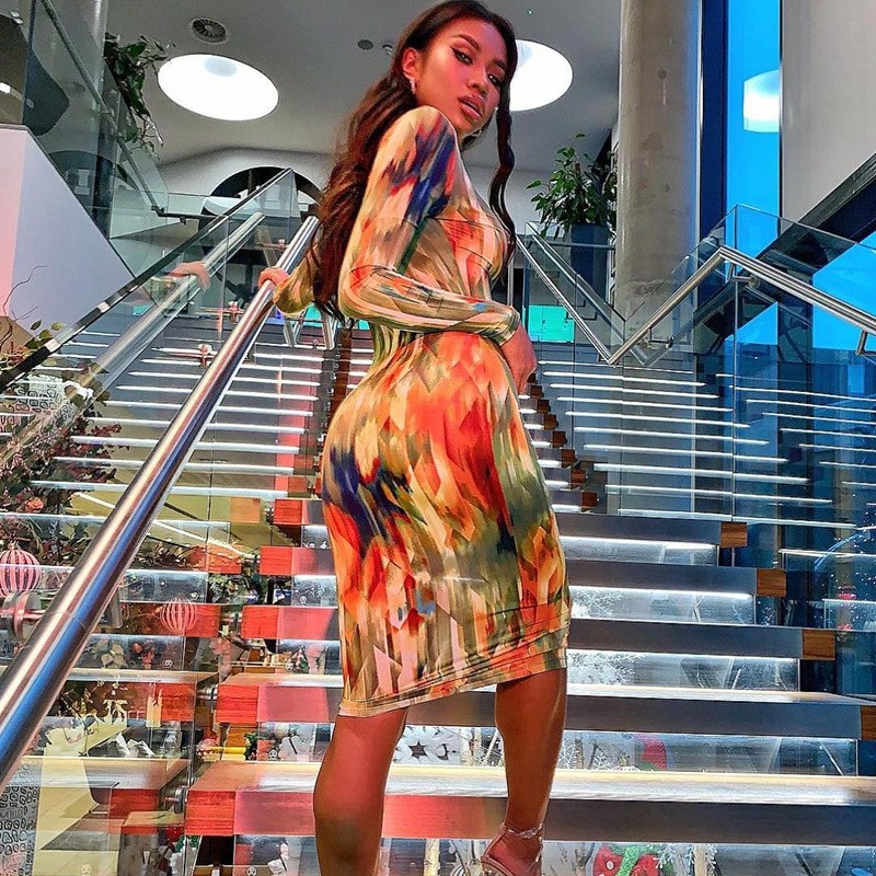 Σέξι εφαρμοστό φόρεμα με μεγάλο ντεκολτέ.