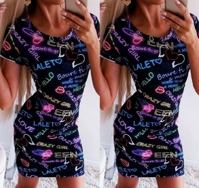 Γυναικεία μίνι φορέματα με κοντά μανίκια. Στυλάτο σχέδιο.