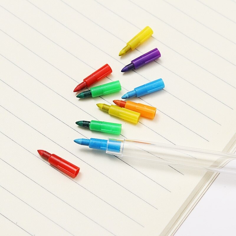 Το μολύβι περιέχει συνολικά 10 διαφορετικά χρώματα, τα οποία μπορείτε να αλλάξετε. Είναι κατασκευασμένο από πλαστικό και στη συσκευασία θα βρείτε συνολικά 4 μολύβια. Με αυτό το μολύβι θα εξοικονομήσει το παιδί σας χώρο στο σχολικό του πενάκι.