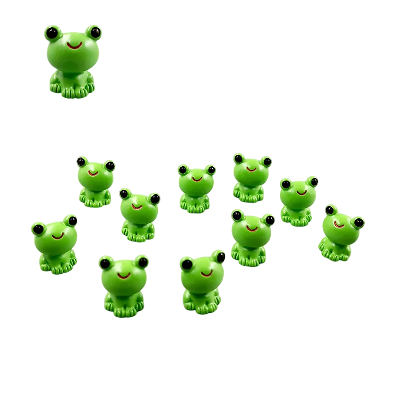 Το σύνολο μίνι βατράχων από ρητίνη είναι το ιδανικό μικρό αξεσουάρ που μπορεί να φωτίσει οποιονδήποτε χώρο. Χάρη στις μικρές του διαστάσεις, φαίνεται διακριτικό, αλλά ταυτόχρονα προσθέτει στο εσωτερικό έναν μοναδικό και φιλικό χαρακτήρα. Υπέροχη ιδέα για μικρό δώρο ή για συλλογή μικρών ζωικών φιγούρων.