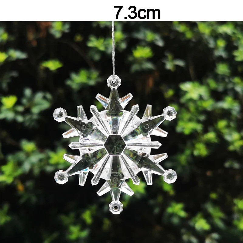 Φέρτε στο σπίτι σας τη μαγεία του χειμώνα με αυτές τις διαφανείς πλαστικές διακοσμήσεις σε σχήμα νιφάδας. Κάθε νιφάδα έχει διάμετρο 7,3 εκ και είναι κατασκευασμένη από ποιοτικό πλαστικό που εξασφαλίζει αντοχή και ελαφρότητα στη διακόσμηση. Η νιφάδα έχει όμορφο σχήμα με πολλές λεπτές άκρες, προσδίδοντας της κομψό και χειμερινό ύφος. Αυτή η διακόσμηση είναι ιδανική όχι μόνο για χριστουγεννιάτικο δέντρο, αλλά μπορεί επίσης να χρησιμοποιηθεί για να στολίσει παράθυρα, κλαδιά ή άλλους χώρους κατά τη διάρκεια της χειμερινής περιόδου.