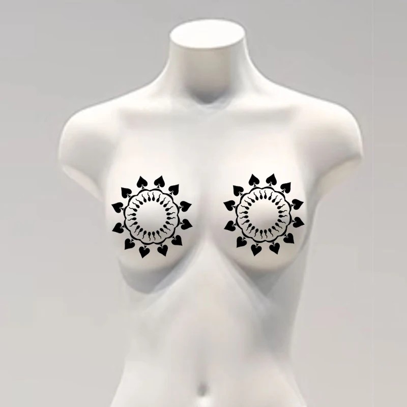 Σύνολο διακοσμητικών αυτοκόλλητων σώματος 2 τμχ Προσωρινό σχέδιο για κάλυψη του στήθους Έντονο μοτίβο για φωτογραφίσεις, κοστούμια και θεματικές εκδηλώσεις Αυτή η σειρά διακοσμητικών αυτοκόλλητων σώματος προορίζεται ως οπτικό αξεσουάρ για δημιουργικό στυλ, φωτογραφίσεις, κοστούμια ή θεματικά πάρτι. Τα αυτοκόλλητα έχουν σχεδιαστεί για εφαρμογή σε διάφορα μέρη του σώματος και χρησιμεύουν για τη δημιουργία έντονης εμφάνισης χωρίς την ανάγκη μόνιμου τατουάζ. Πρόκειται για προσωρινή λύση που επιτρέπει εύκολη αλλαγή στυλ ανάλογα με την περίσταση. Το προϊόν προορίζεται αποκλειστικά για διακοσμητικούς σκοπούς. Κατάλληλο για χρήστες από 14 ετών. Τα αυτοκόλλητα διαθέτουν κολλητική επιφάνεια και εφαρμόζονται με τη βοήθεια νερού.
