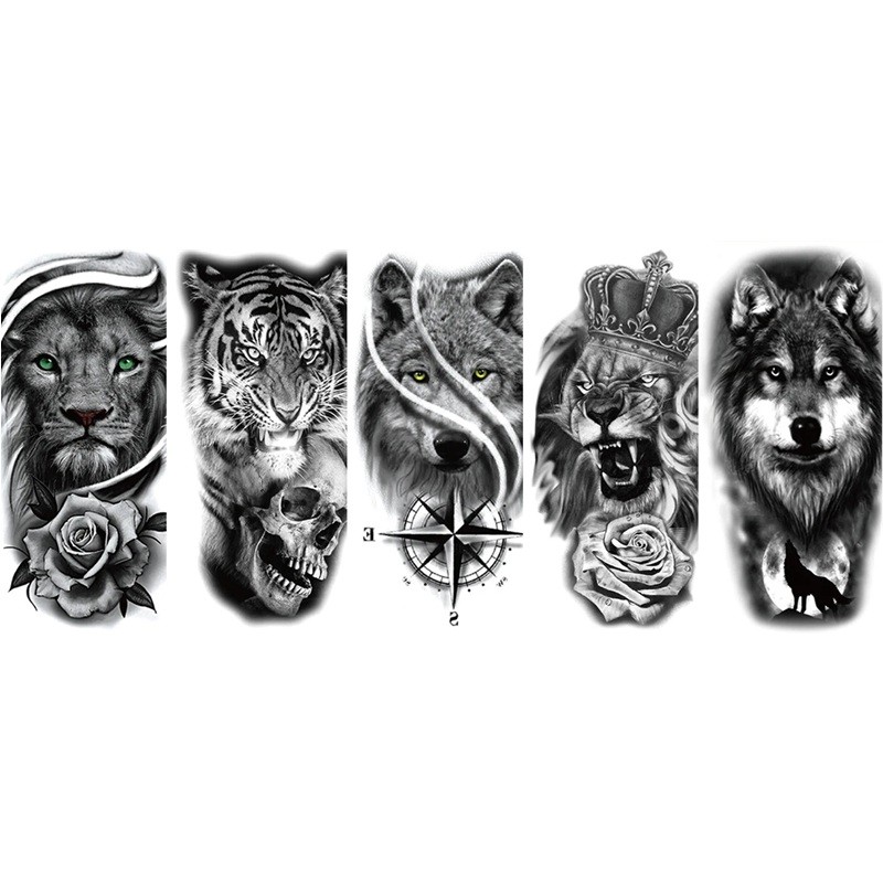 Συσκευασία 5 τεμαχίων προσωρινών τατουάζ λιοντάρι λύκος τίγρης 21 x 11,4 εκ. Αδιάβροχα αυτοκόλλητα τατουάζ Τατουάζ αυτοκόλλητο Για άνδρες και γυναίκες Προσωρινή σωματική διακόσμηση