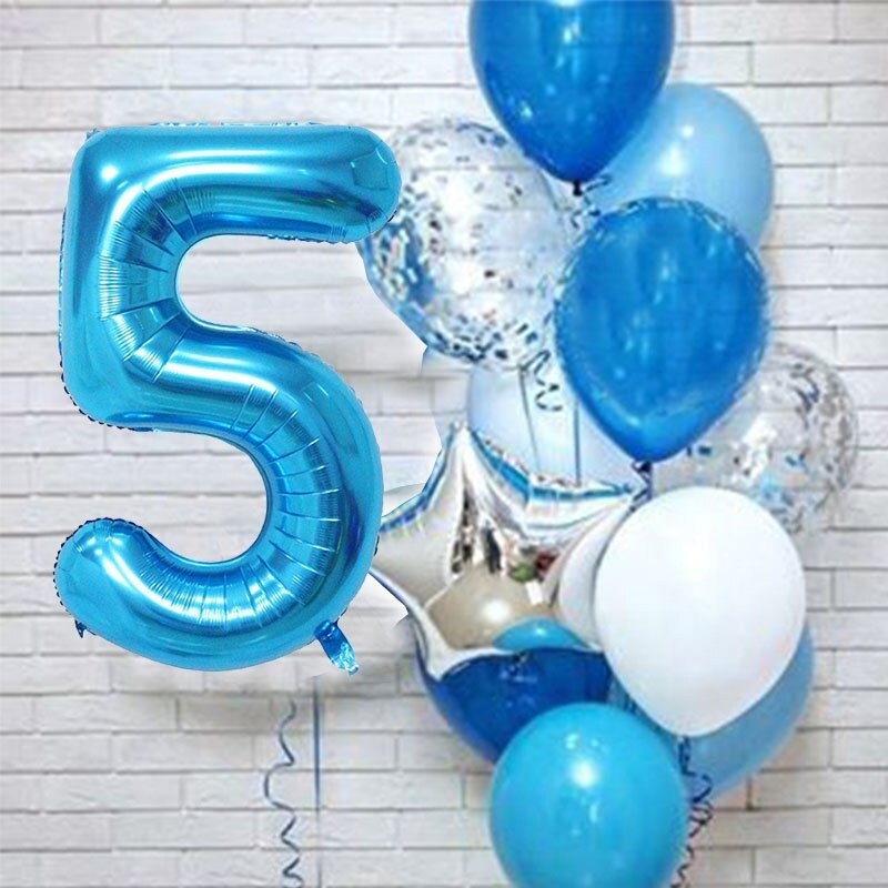 Περιεχόμενο συσκευασίας: 1x μπαλόνι με αριθμό, 1x μπαλόνι με αστέρι, 6x μπλε μπαλόνι, 2x λευκό μπαλόνι, 2x μπαλόνι με κονφετί