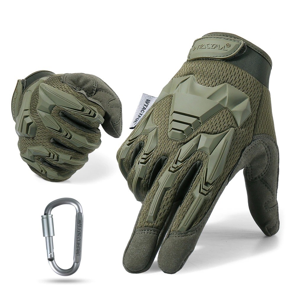 Τα τακτικά στρατιωτικά γάντια προστατεύουν εξαιρετικά από γρατσουνιές κατά τις πτώσεις. Ιδανικά για airsoft, paintball και επίσης για χειμερινά σπορ (σκι, snowboard). Απορροφούν τον ιδρώτα από τις παλάμες και προστατεύουν τα δάχτυλα από το κρύο. Εύκολη και σταθερή εφαρμογή με αυτοκόλλητο. Συσκευασία με καραμπίνα.