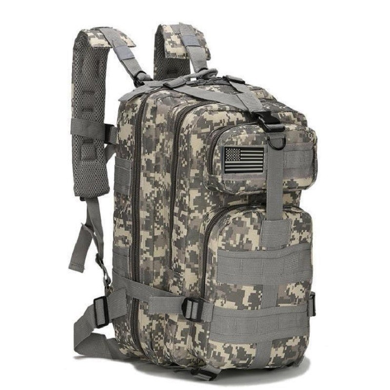 Τακτικός στρατιωτικός σακίδιο με όγκο περίπου 30 λίτρων. Κατασκευασμένο από νάιλον. Το σακίδιο είναι σχεδιασμένο ώστε να αντέχει σε δύσκολες εξωτερικές συνθήκες. Το σακίδιο εξωτερικών δραστηριοτήτων είναι σημαντικός εξοπλισμός για όποιον απολαμβάνει να περνάει χρόνο στη φύση. Είναι αρκετά μεγάλο ώστε να χωράει όλο τον εξοπλισμό για κάμπινγκ και πεζοπορία. Είναι εξοπλισμένο με εργονομικό σχεδιασμό, που το καθιστά άνετο στη χρήση ακόμα και για μεγαλύτερες περιόδους.