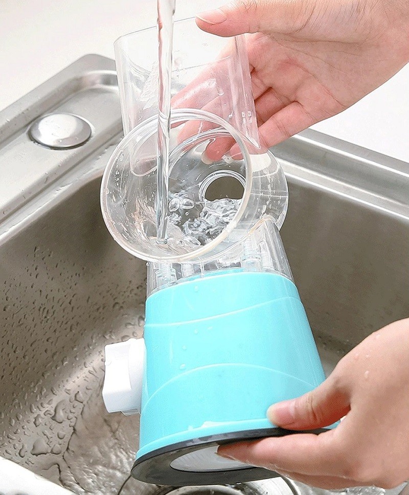Ο τρίφτης με λαβή είναι χειροκίνητος. Η συσκευασία περιέχει τρία εύκολα ανταλλάξιμα είδη λεπίδων - λεπτό τρίψιμο, χοντρό τρίψιμο, κοπή. Ο τρίφτης με λαβή θα γίνει το αγαπημένο σας εργαλείο στην κουζίνα.
