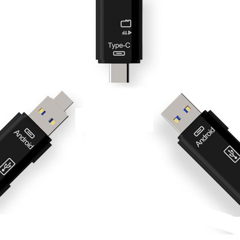 Λειτουργεί ως αναγνώστης καρτών με τρία διαφορετικά interfaces (USB-C + USB + micro USB)