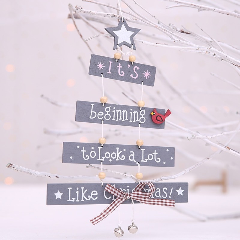 Ξύλινο κρεμαστό δέντρο με χριστουγεννιάτικο κείμενο.