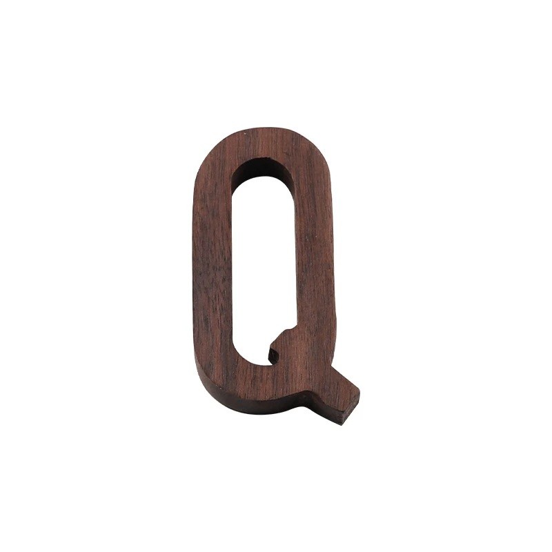 Το ξύλινο γράμμα Q είναι ένα απλό αξεσουάρ που μπορεί να χρησιμοποιηθεί για τη σήμανση του χώρου ή ως μέρος της διακόσμησης του εσωτερικού. Είναι κατασκευασμένο από φυσικό υλικό, της οποίας η υφή είναι ευδιάκριτη στην επιφάνεια. Έτσι, κάθε κομμάτι φαίνεται φυσικό και δεν διαταράσσει το περιβάλλον γύρω του. Φυσικό ξύλο δίνει στο γράμμα αυθεντική εμφάνιση χωρίς έντονες επεξεργασίες. Η χρωματική απόχρωση αντιστοιχεί σε καφέ απόχρωση, η οποία είναι ορατή στη φωτογραφία.