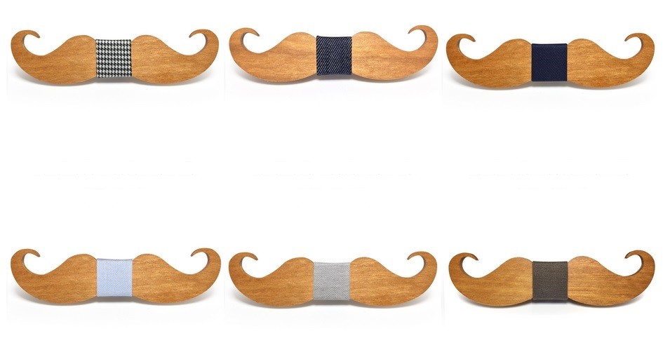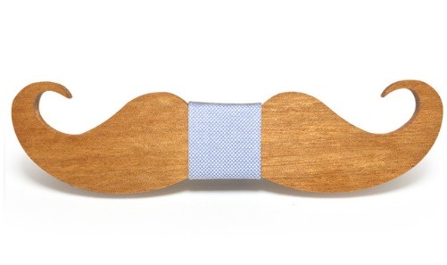 Ξύλινο παπιγιόν σε σχήμα μουστακιού από ανοιχτό ξύλο.