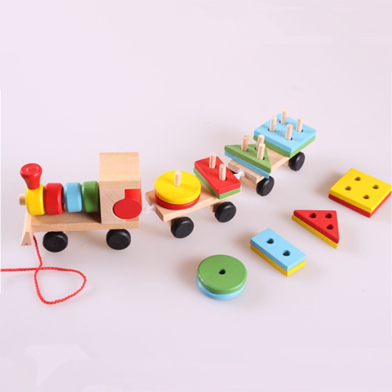 Ξύλινο τρένο με γεωμετρικά σχήματα