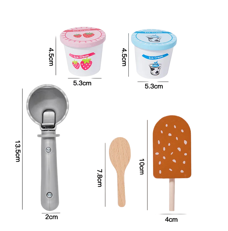 - Περιλαμβάνει 6 γεύσεις παγωτού, ποτήρια παγωτού, παγωτά και παιχνίδια χρήματα