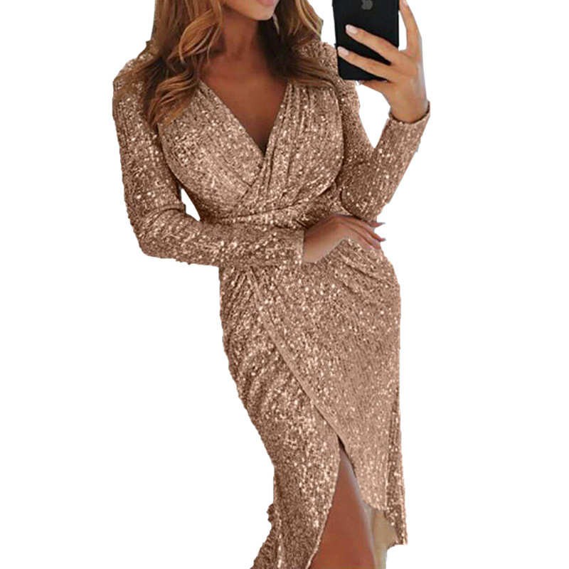 Πολυτελές ζακάρ midi φόρεμα με μακριά μανίκια.